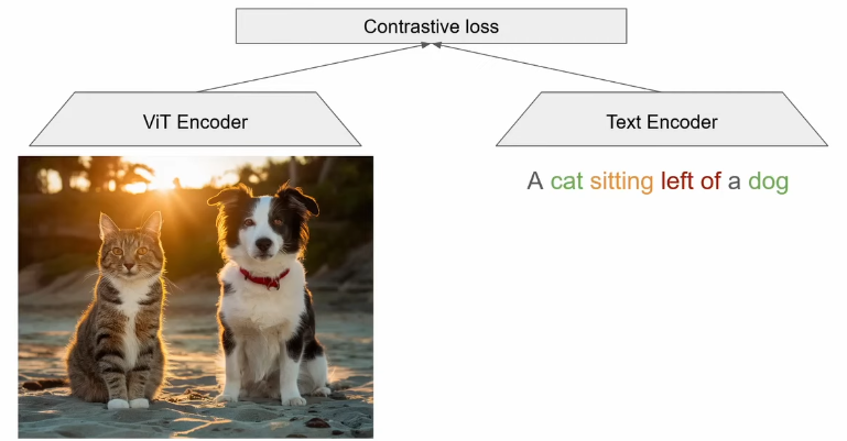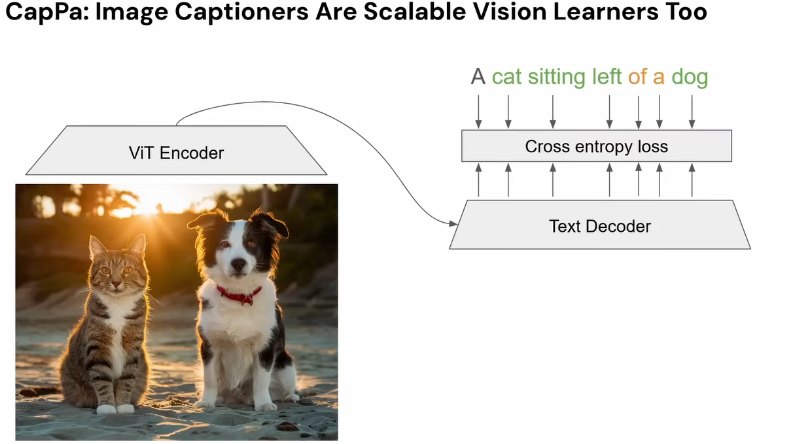 Captioning loss is a stronger supervision signal, and successfully fixes those failure modes, this is the current SOTA for training vision encoders